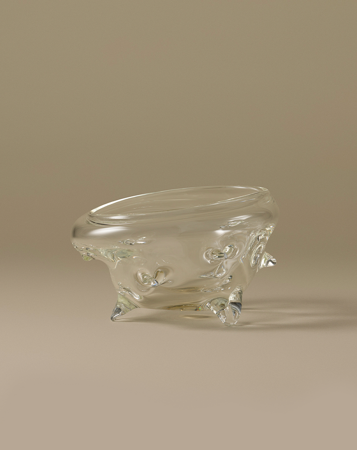 Resting on three glass feet, this design is equally aesthetic and functional. Pairing perfectly with the glass spoon used as a sugar bowl in the kitchen or for your fruit or eggs on the kitchen bench. You will want to have this bowl out on display at all times.